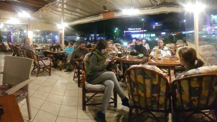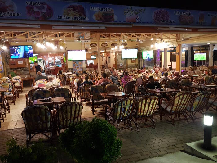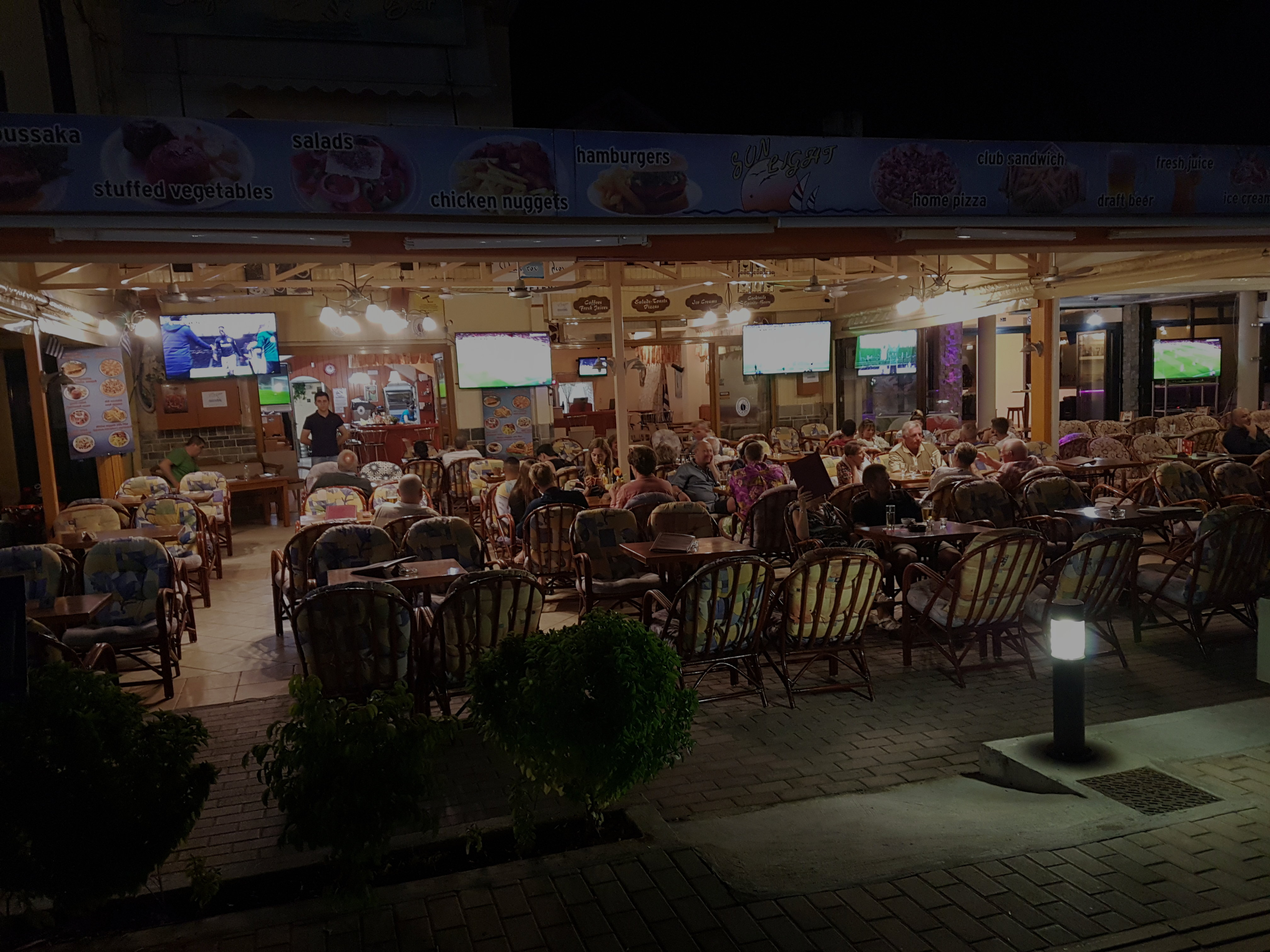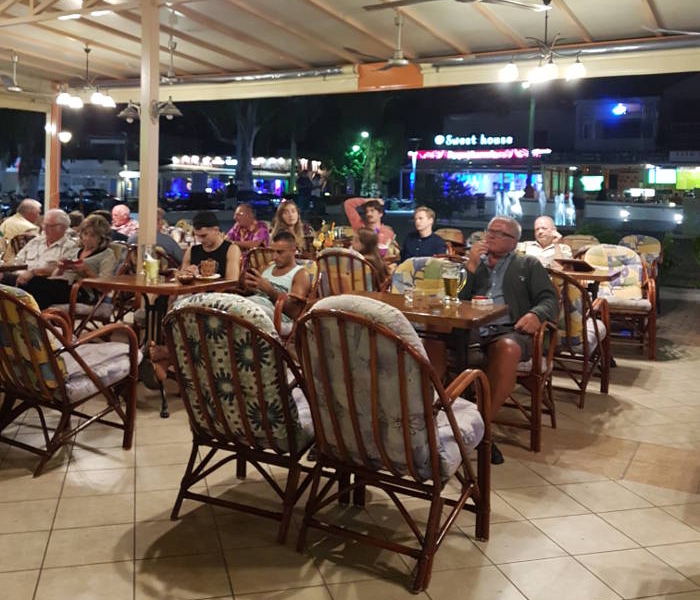Wir sind den ganzen Tag für Sie da.Von früh morgens, wo Sie Ihr Frühstück und Ihren Kaffee genießen können, bis spät in die Nacht, wo Sie ein frisches kaltes Bier und eine Auswahl an Getränken genießen können. Snacks werden hier auch serviert.